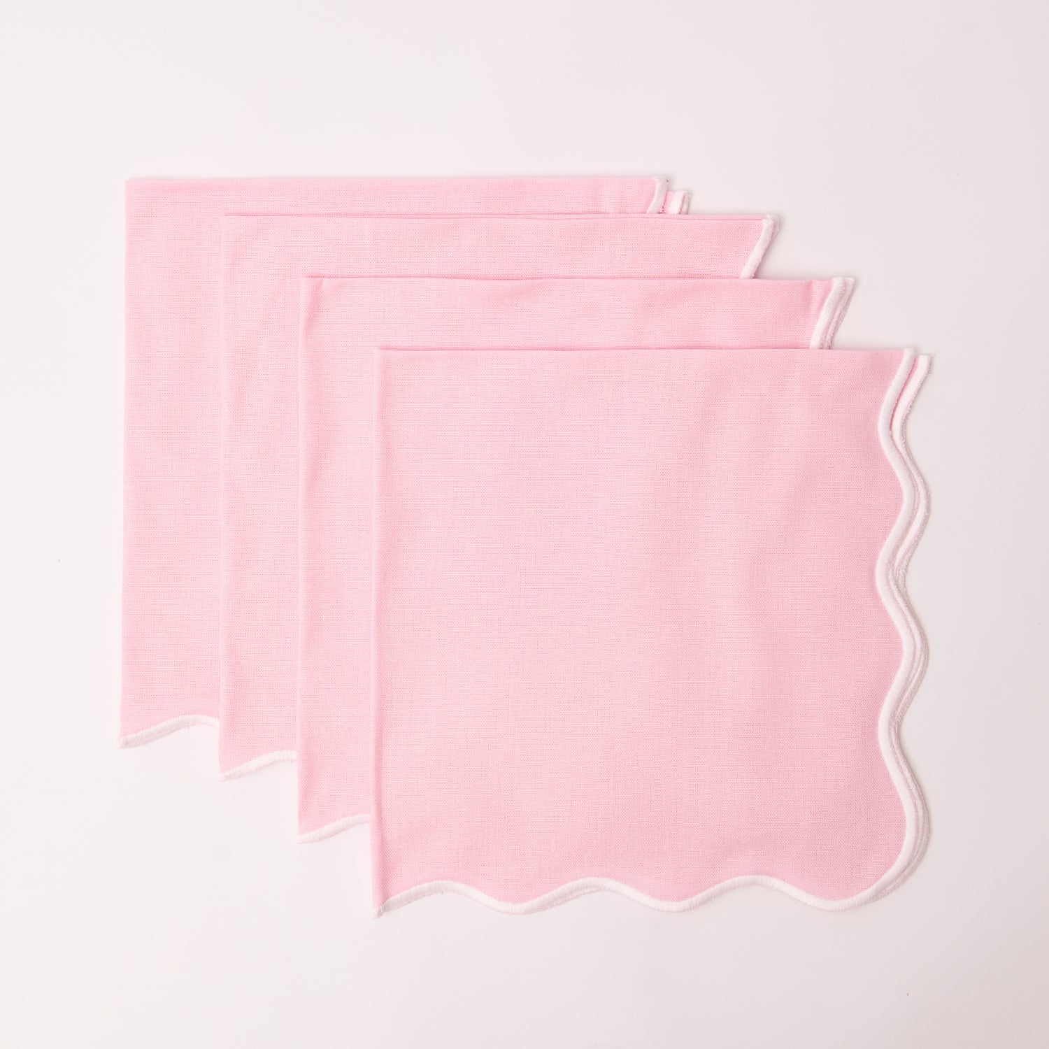 Pale pink Wave napkin with white embroidered edge (Set of 4)