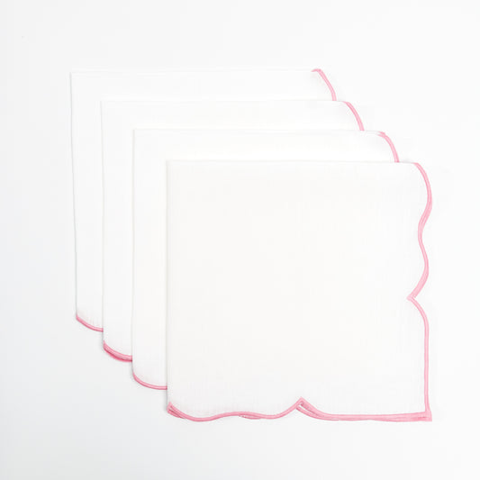 Pale pink Wave napkin with white embroidered edge (Set of 4)