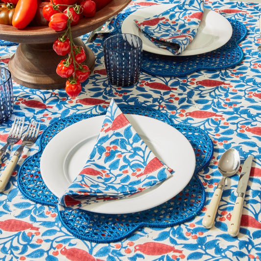Beige Scallop Napkins with White Embroidery (Set of 4)