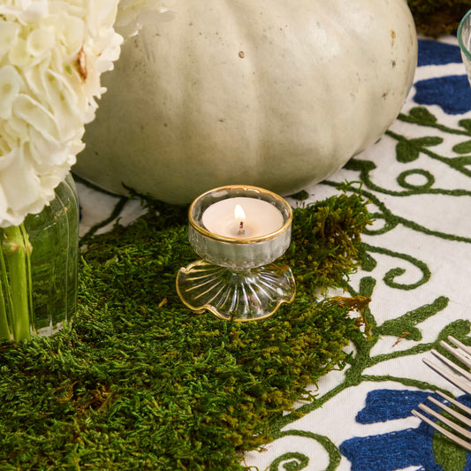 Gold Rimmed Glass Pompom Candlestick (Set of 2)