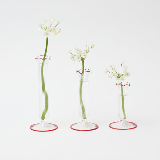 Fluted Red Edged Single Stem Bud Vases (Set of 3)