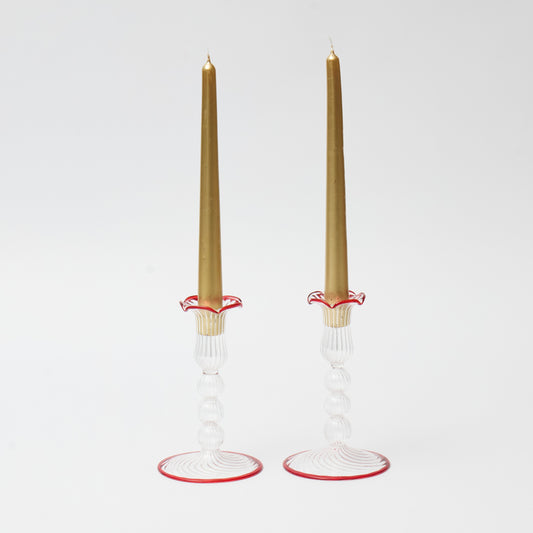Red Rimmed Glass Pompom Candlestick (Set of 2)