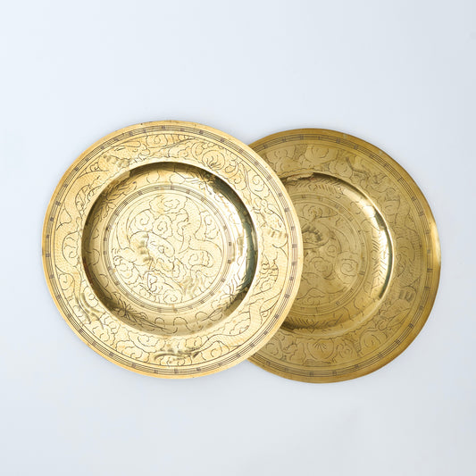 Pair of Brass Engraved Circular Platters