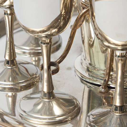 Silver-plate Cocktail shaker, tray and 6 Silver-plate Goblets