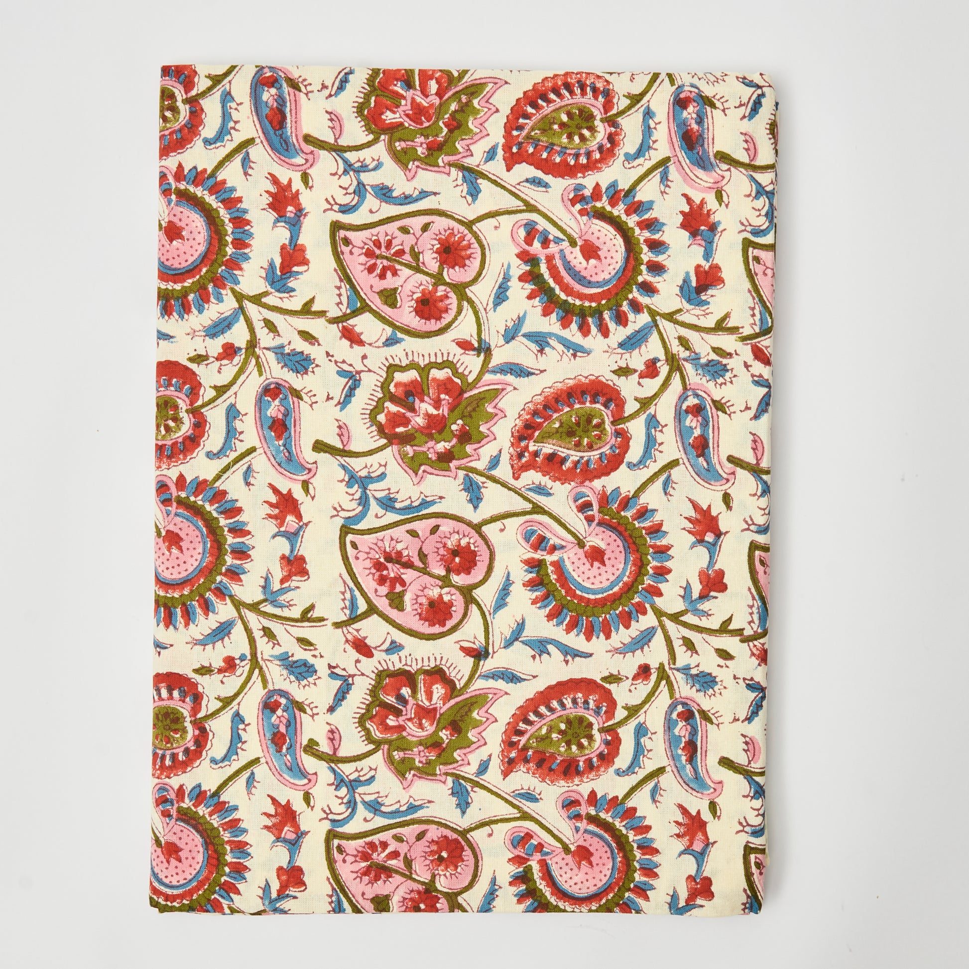 Hand block printed by artisans, each cloth carries subtle variations that make it beautifully one of a kind. The layered colours and bold design strike the perfect balance between playful and refined a piece that feels just as at home for an intimate dinner as it does at a long, laughter filled feast.