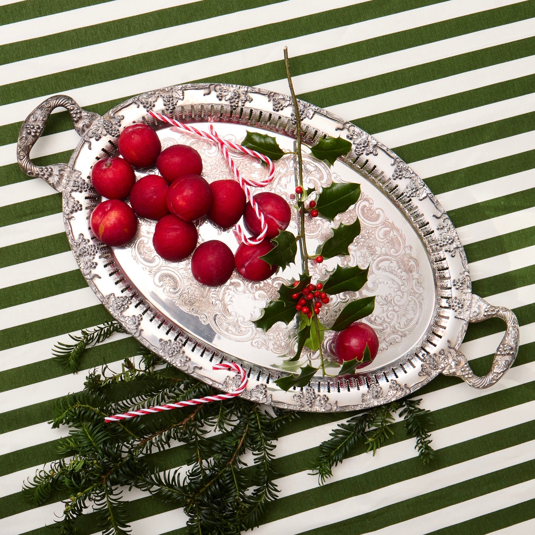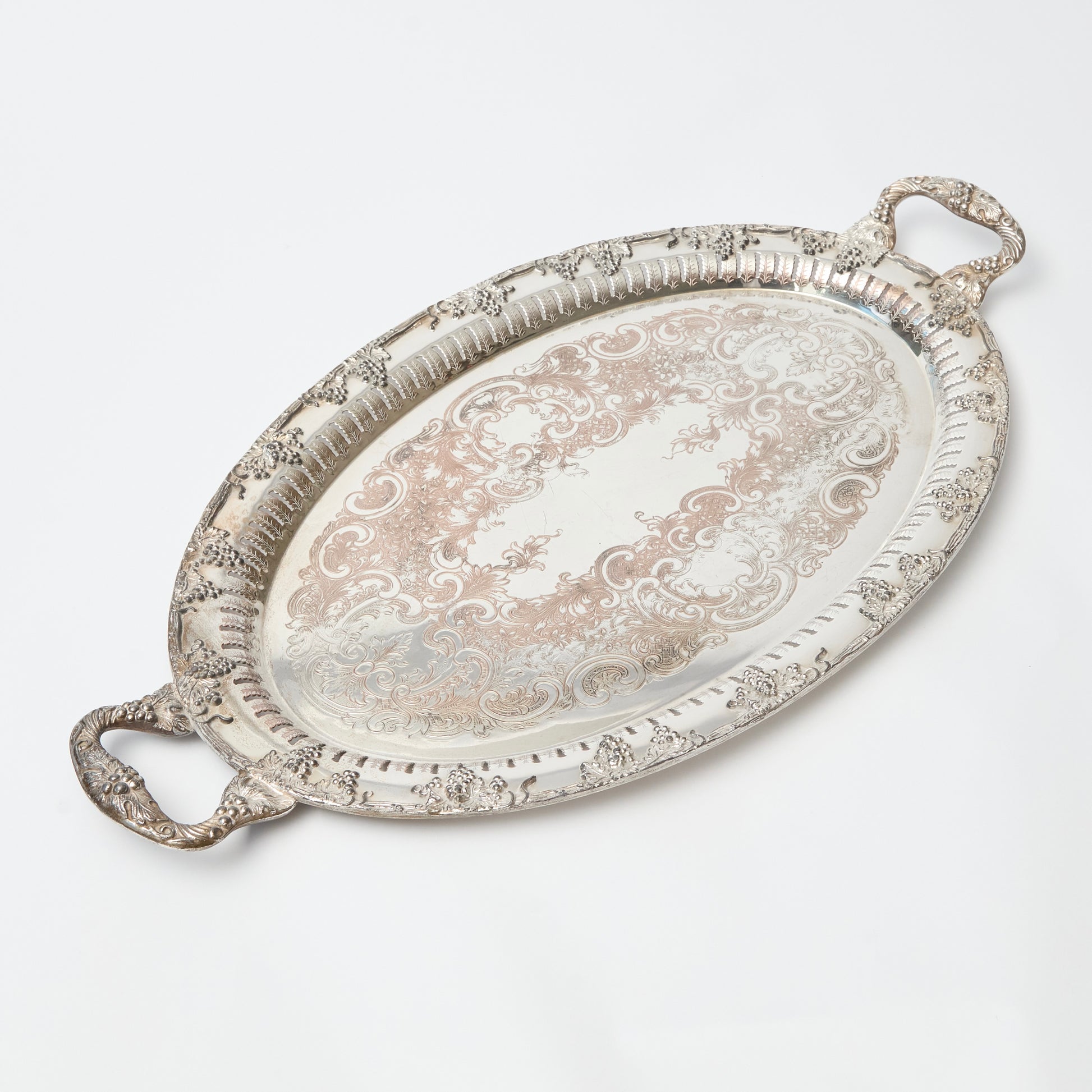 A magnificent silver-plated tray with handles. Perfect for serving drinks before dinner, and for clearing up afterwards. Add a touch of sparkle to your evenings.