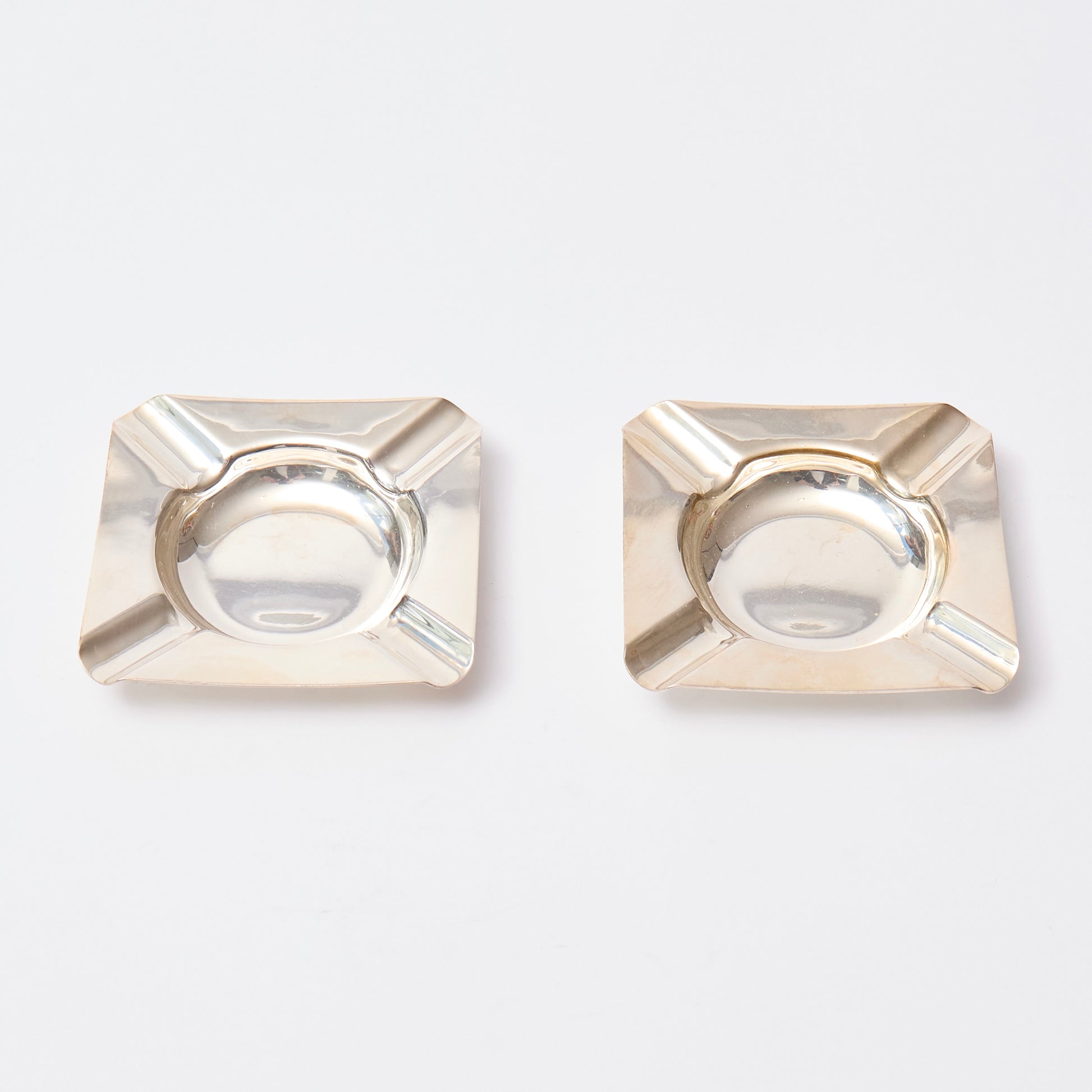 For the cigar or cigarette smoker, a classic vintage pair of silver plated ashtrays. An elegant addition to any table.
