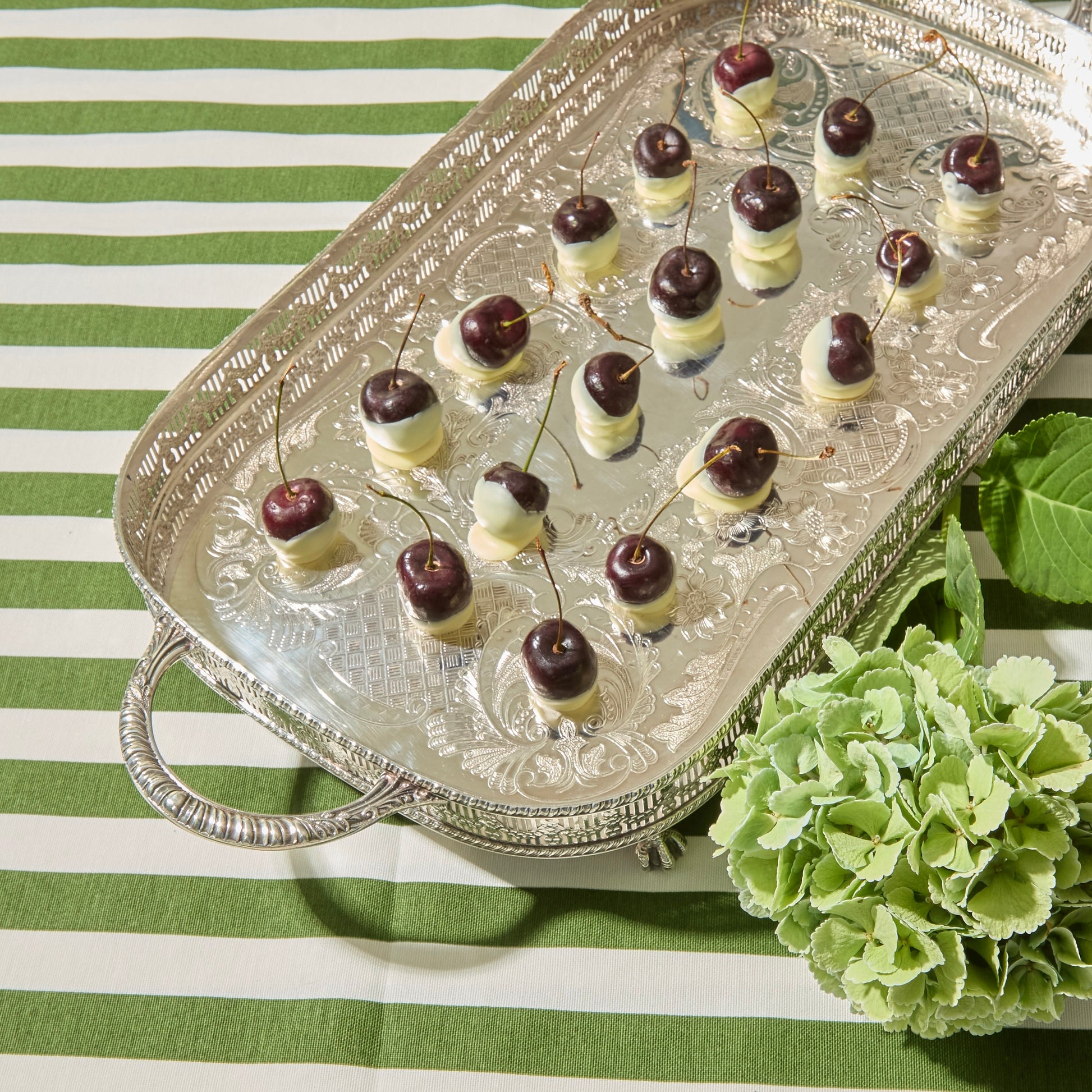 A magnificent silver-plated tray with handles. Perfect for serving drinks before dinner, and for clearing up afterwards. Add a touch of glamour to your evenings.