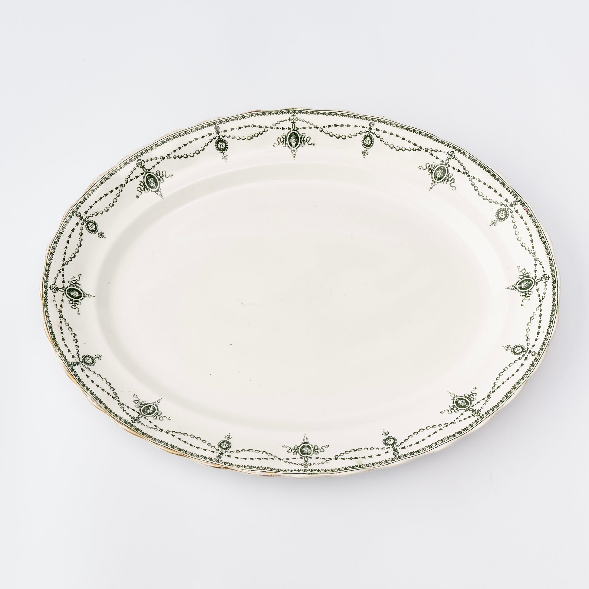 Vintage green and white serving platter